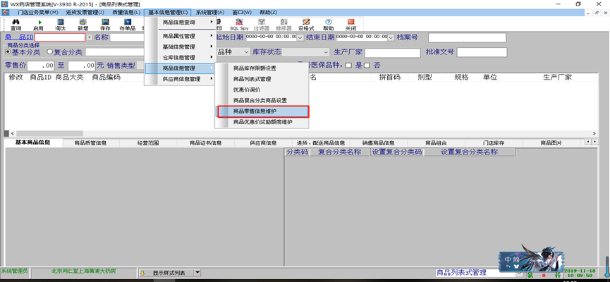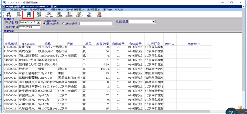 点查询,查询出所有商品信息医保信息, 维护直接修改点保存,如下