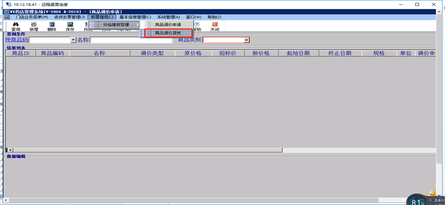 点击查询,查询出申请保存的记录 选中点击复核, 复核完成的单据将在录入的执行日期自动执行生成新的价格, 如需立即生成, 点击复核,后直接再点击立即执行按钮 如下图